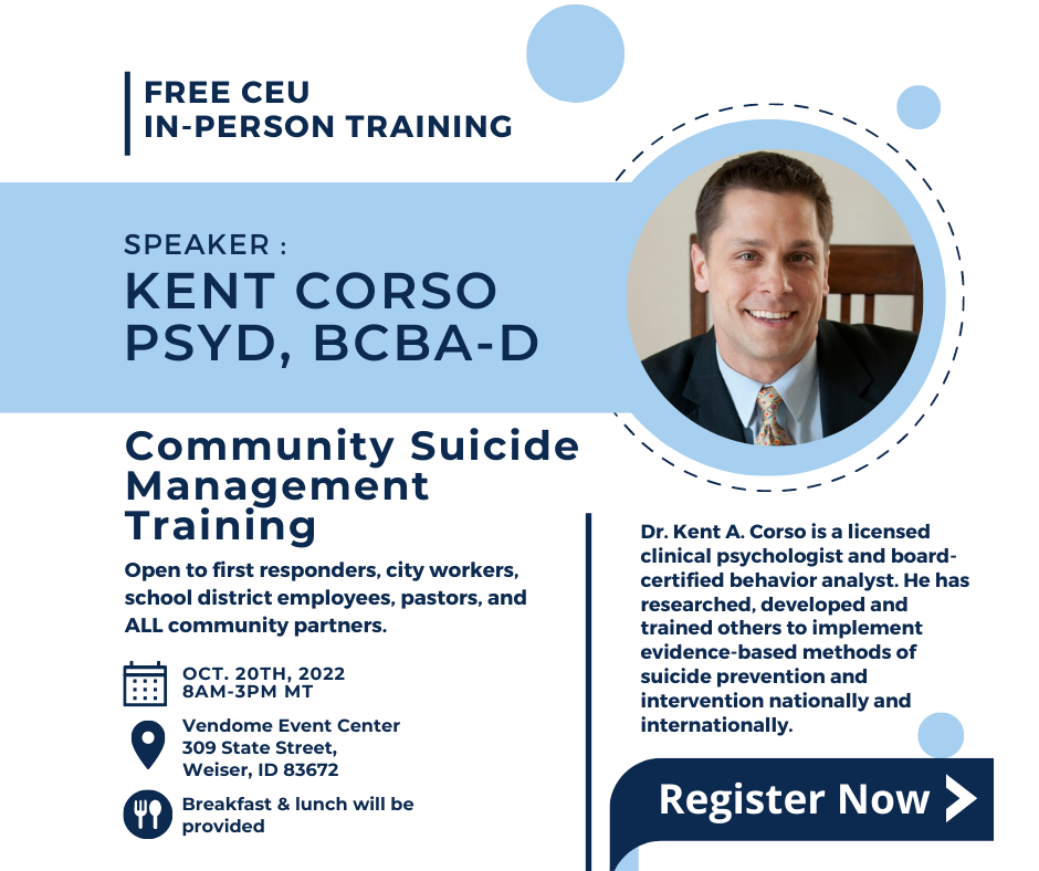 | Join Empower Idaho in a free, online training to learn about what 988 is, when to call, and how to make sure people know what it is! This training will be hosted by: Belinda Dalrymple, LCPC, Adam Moravek, LMSW, and Lee Flinn, MBA.